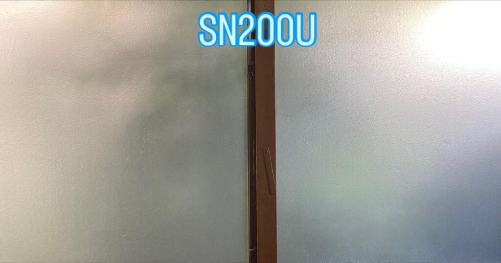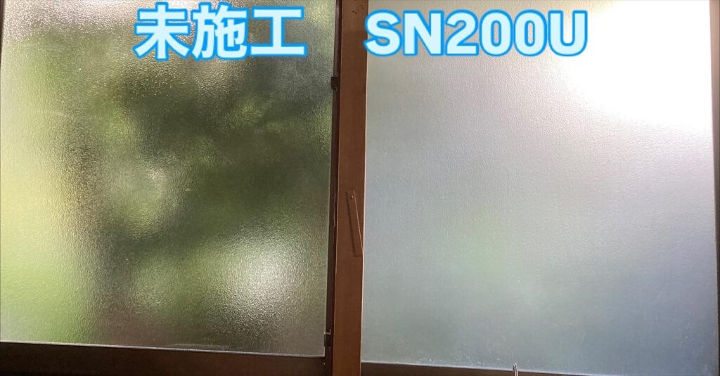 凹凸ガラスなのでドライ貼りとなります。